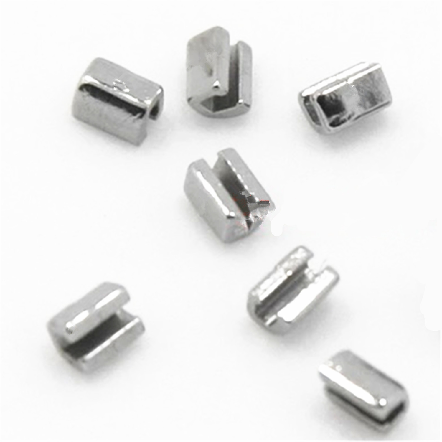 Orthodontic Crimpable Split Stops are essential components designed for precise archwire management in fixed appliance therapy These specialized stops feature a split design that allows easy placement and secure crimping onto archwires of various diameters Manufactured from high quality medical grade stainless steel they provide reliable stabilization and prevent unwanted wire sliding during orthodontic treatment